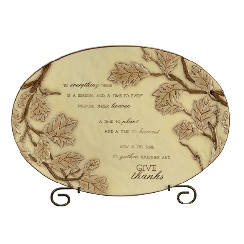 Best Grasslands Road Falling Leaves Large Oval Give Thanks Raised Leaf Serving Platter with Stand