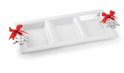 Classic white porcelain sectioned server accented with cast metal tree handles trimmed with red grosgrain bows. 20.5-inches long. Mud Pie's Home For The Holidays is a collection of festive accents for your December table. Classic colors and designs mean you'll be enjoying them for years to come. Readmore .. .